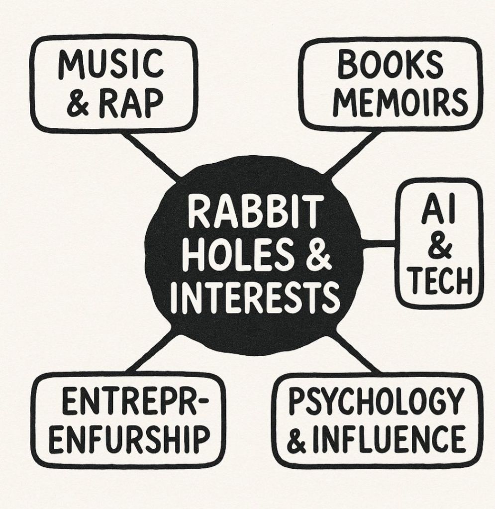 I’ve always been someone who dives deep. What starts as a spark of curiosity usually turns into a full-blown rabbit hole — and I don’t stop digging until I’ve mapped the whole tunnel. My interests branch into music and rap, books and memoirs, psychology and influence, tech and AI, and entrepreneurship. Each one connects back to the same core drive: to explore, create, and build something meaningful out of raw ideas. This blog is where I put those explorations on display — the notes, the riffs, the lessons, and the wild turns that come from chasing curiosity all the way down.